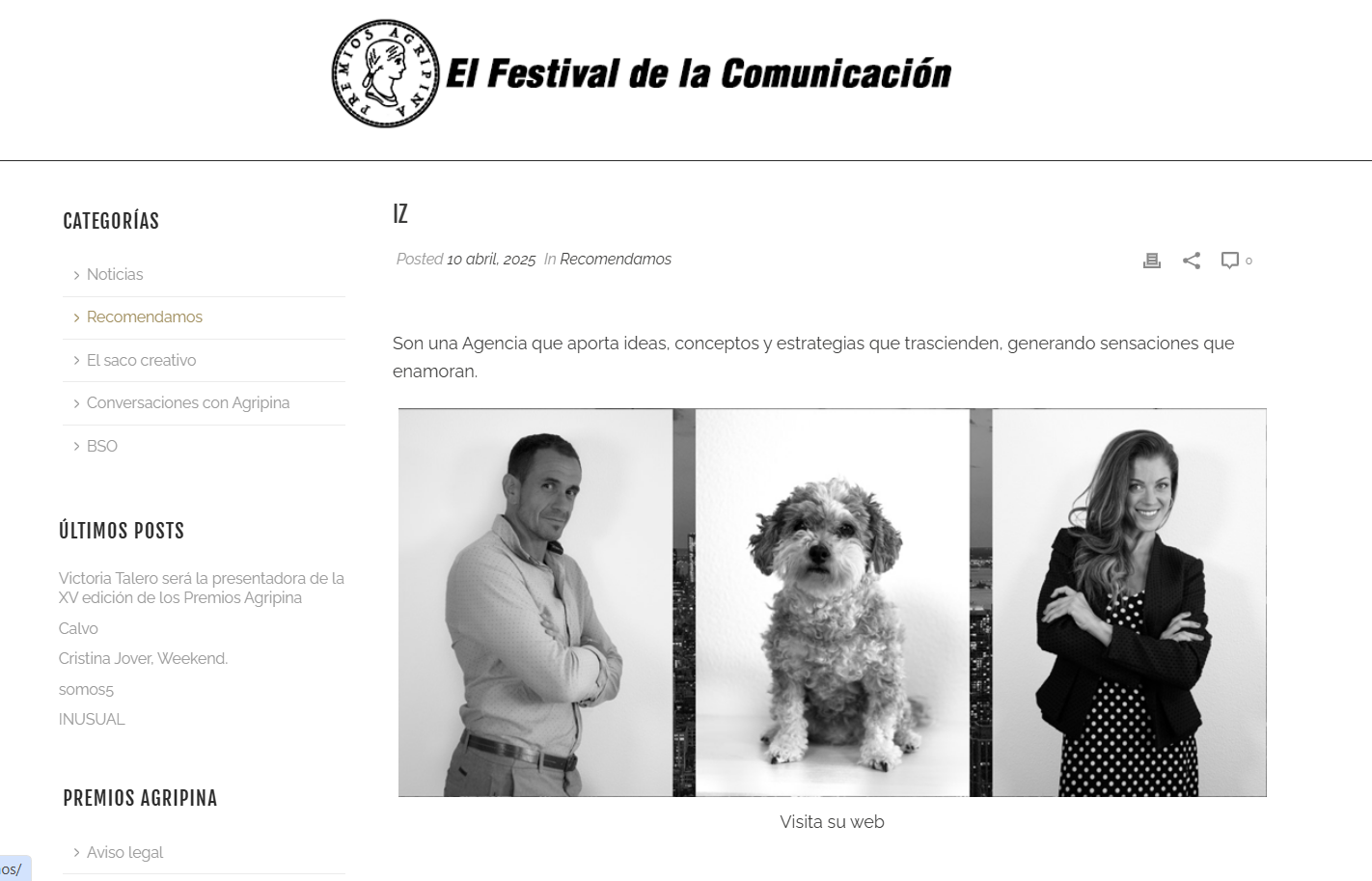 Premios Agripina Nos recomienda en su web como empresa referente en el sector de la Publicidad, el Diseño y la Comunicación.